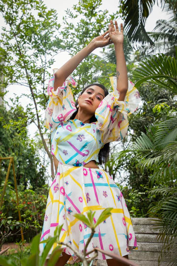 Our Bella Dress has slits at the waist and comes with cute puffed sleeves. The back comes with an elasticated band and is backless.