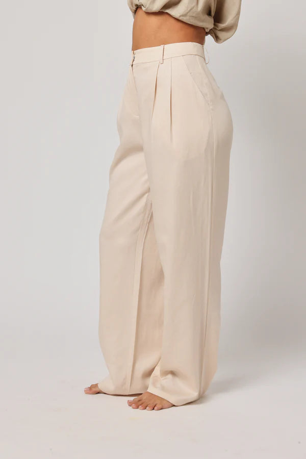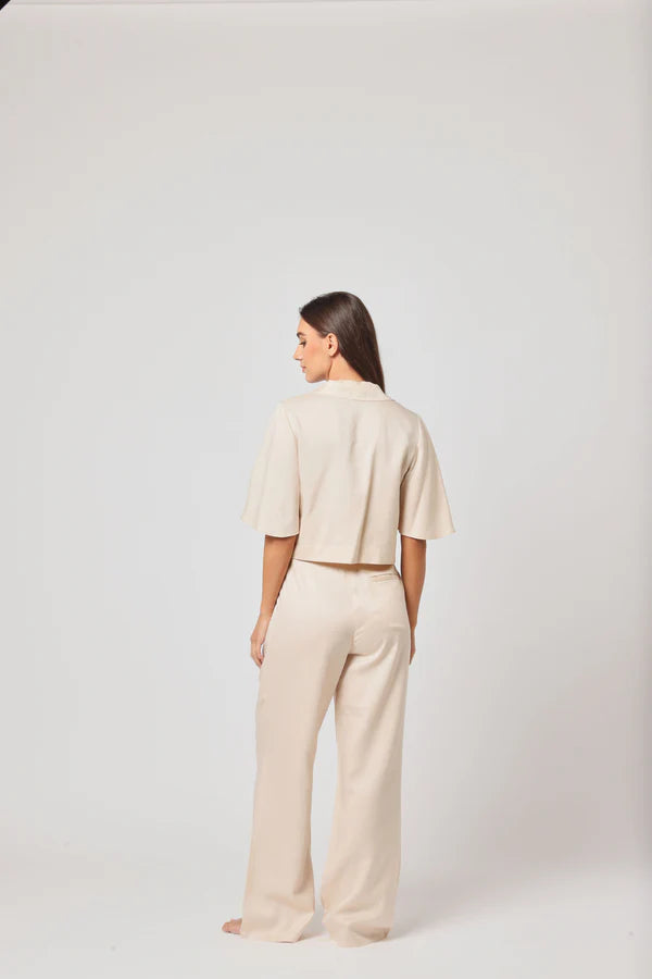 Elevate your wardrobe with the Dhara Trousers. Featuring a high-waisted cut, front pleats, and a flowing wide-leg design, these trousers offer a polished yet relaxed look, perfect for any occasion.