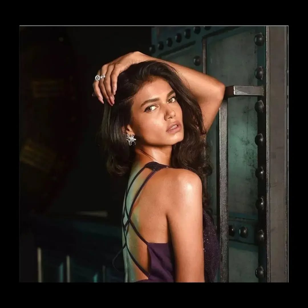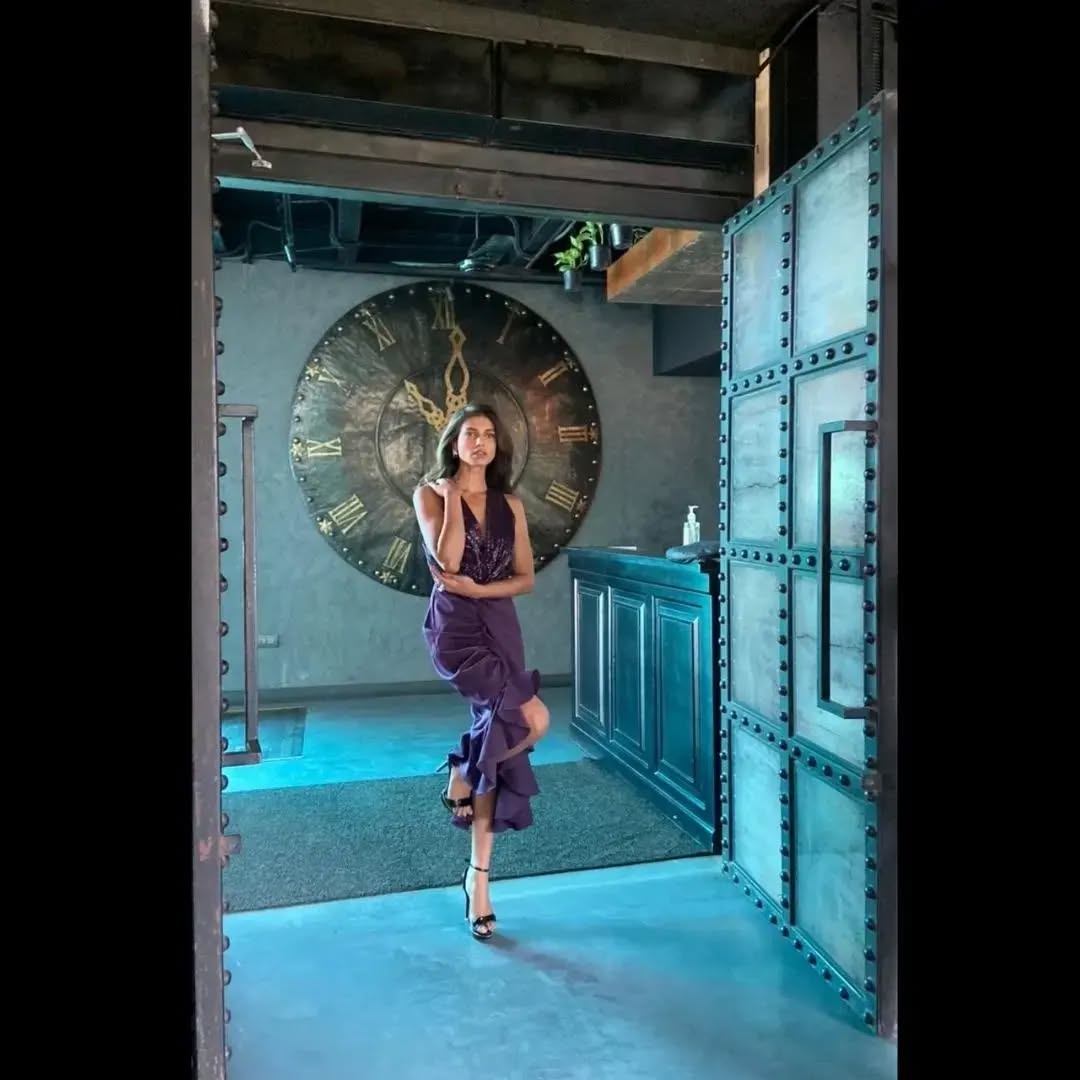 Sequined V -neck Yoke With Ruched Fishcut Ruffled Dress