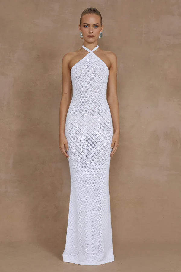 Elevate your everyday style with the Simi Maxi Dress, crafted from a luxurious knit fabric. Featuring a halter neck tie and a flowing maxi length, this dress combines sophistication with comfort.