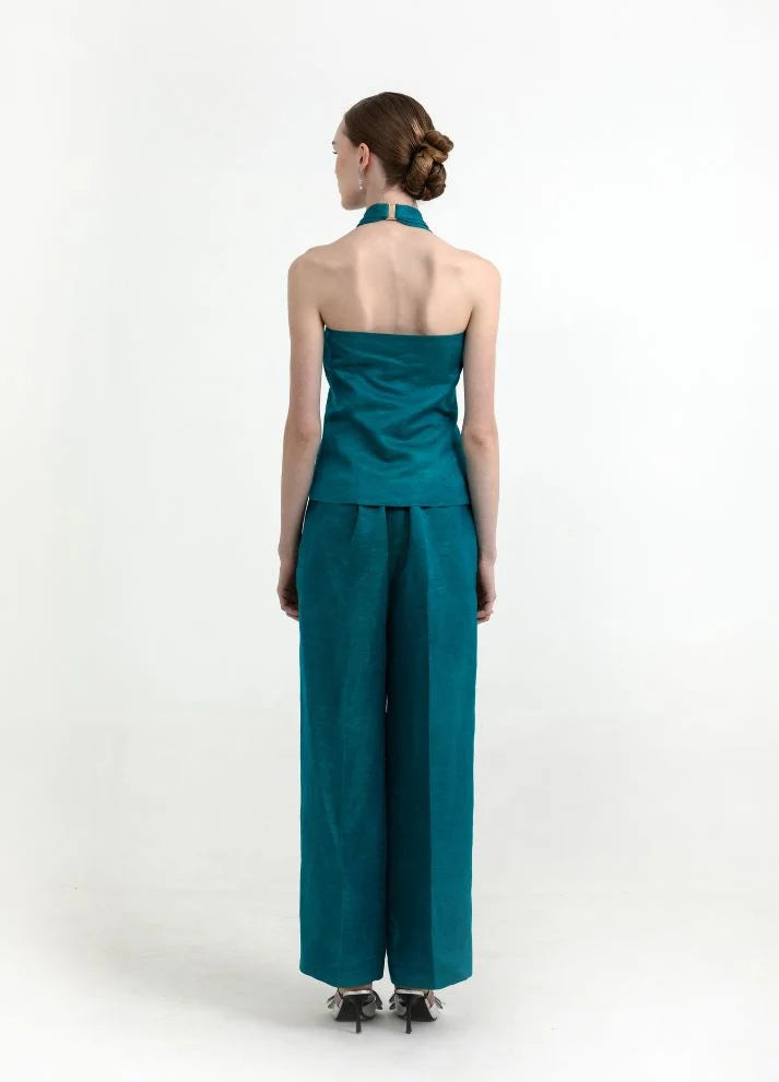 Minimalism meets quiet sensuality in the Skye Co ord set. The cross-wrap top with a subtle front slit cascades into gentle straight fit trousers, blending understated elegance with modern allure.